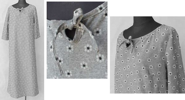 \3,500/■婦人サイズL、グレー地に白黒花柄、綿、総丈118cm
