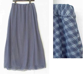 裏地のすそは大きなシャーリング、スカート丈88cm、綿ポリ系