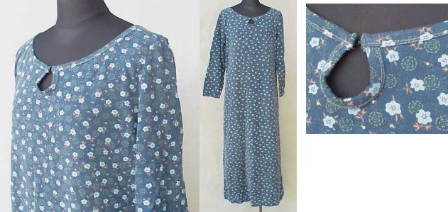 \3,000/■婦人サイズL、紺地に同系色の小花柄、総丈約120cm