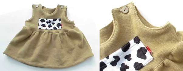 \1,000/■サイズ80cm、薄茶色のコーデュロイ厚地、ポケットは牛柄、ボタンは茶色のクマさん