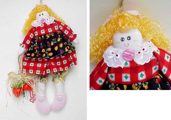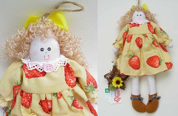 \2,500/■イチゴ柄のワンピに星形リース、身長30cm、座高15cm、頭に壁にかけるひもがついてます。