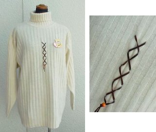 ■袖口に木のビーズをつけてみました。サイズL、ベージュ、