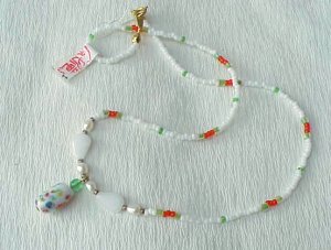 \600/■ペンダント部分白に花柄?、長さ40cm
