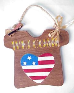 ステンシルのウエルカムボード、和布のベア、ハートのリース