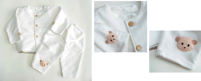 \2,300/■サイズ90、白(クマのアップリケ付き)、素材コットンフリース