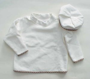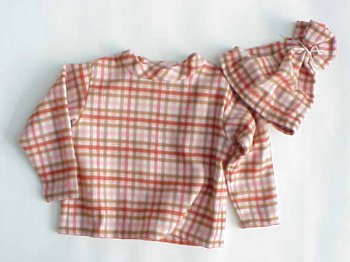 ■サイズ90、白(茶色のチェック縁取り)、素材コットンフリース