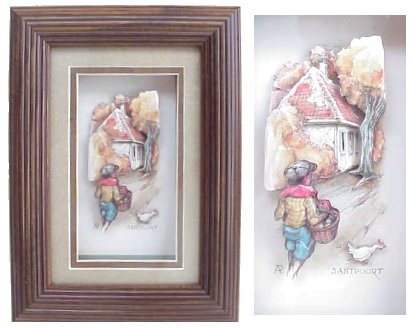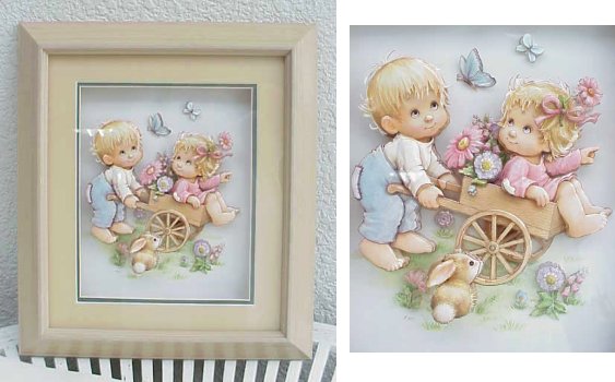 平面な写真や絵のプリントを立体的に見せる技法です。